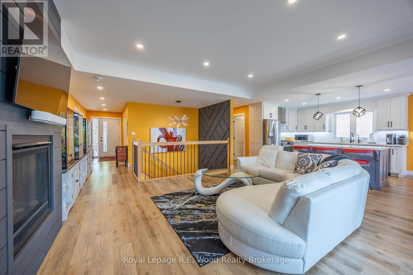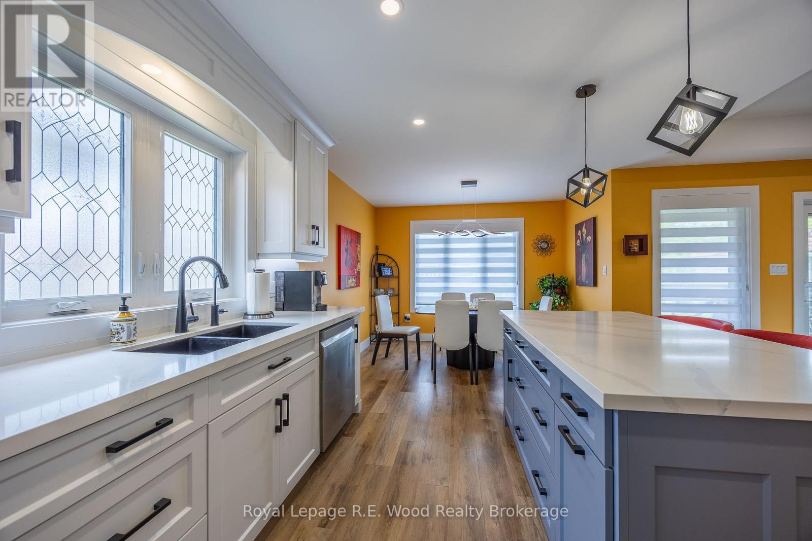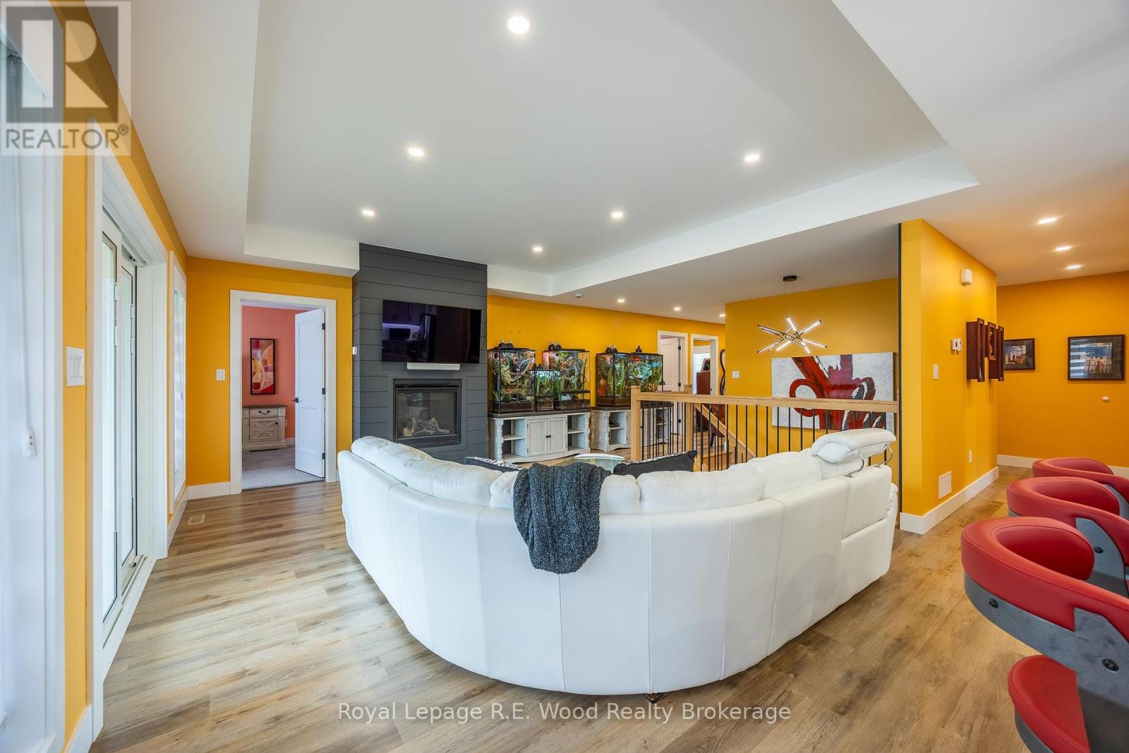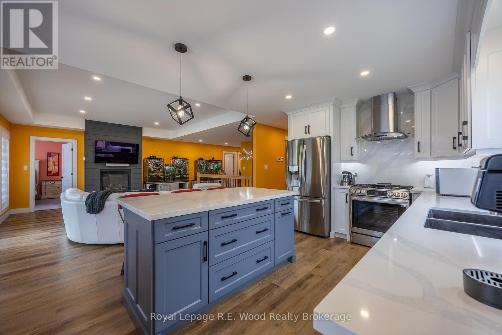 Experience stylish living in this beautifully designed bungalow in Mill Pond Estates with a walkout basement and stunning pond views. The sleek black and white stucco exterior sets the tone for the modern finishes throughout. Step into a spacious mudroom with main floor laundry, leading to an open-concept living area with a cozy gas fireplace and patio doors to the upper deck. The bright kitchen features stone countertops and backsplash, a large island, and a walk-in pantry. The main floor offers a primary suite with a walk-in closet and luxurious 4-piece bath, plus a second bedroom or office and an additional 3-piece bath. Downstairs, enjoy a large family room, two more bedrooms, another full bath, and walkout access to the backyard oasis overlooking the fountain pond. This home blends luxury, functionality, and a peaceful setting, everything you've been waiting for. (id:4069)