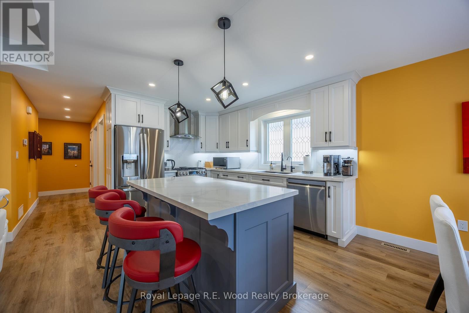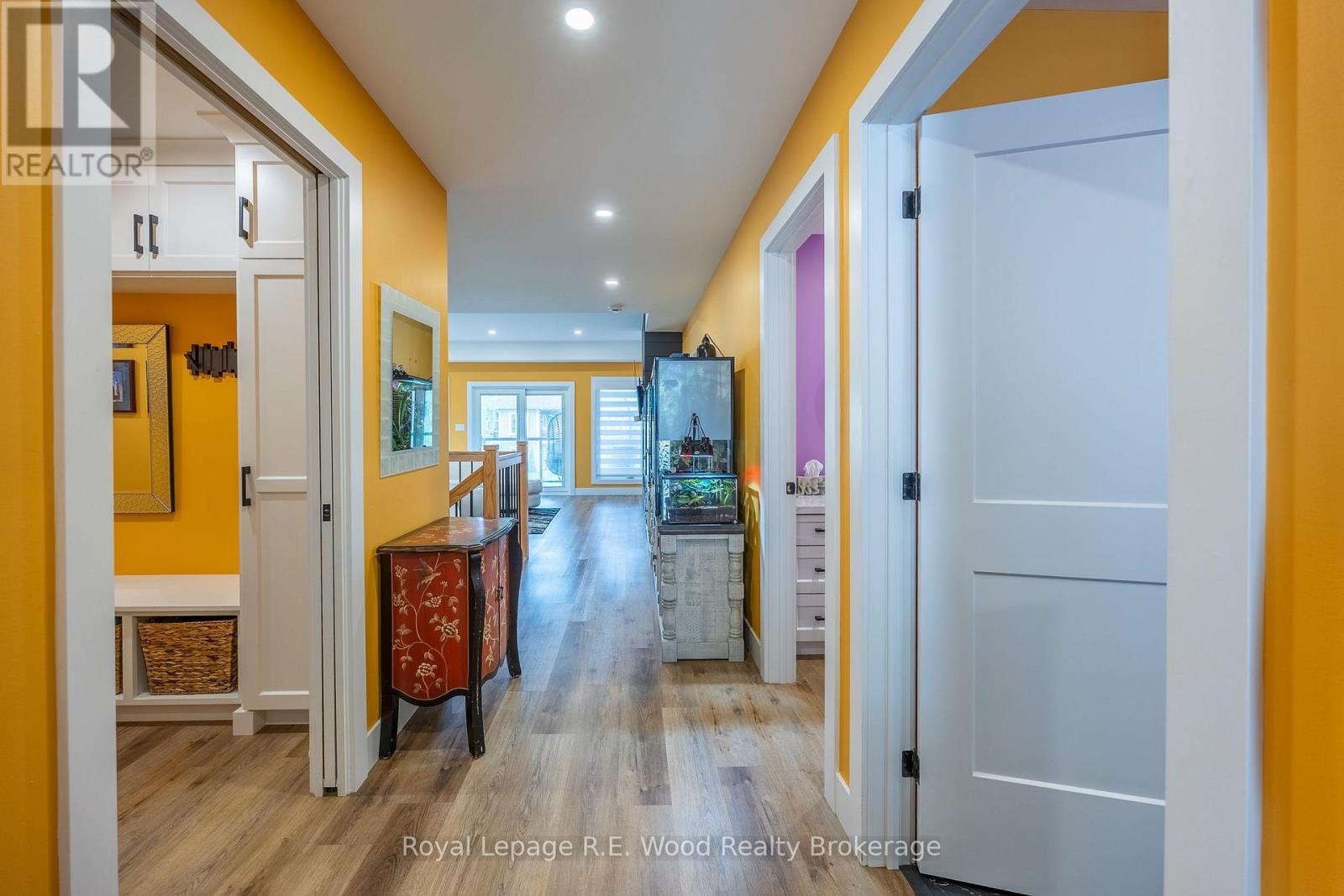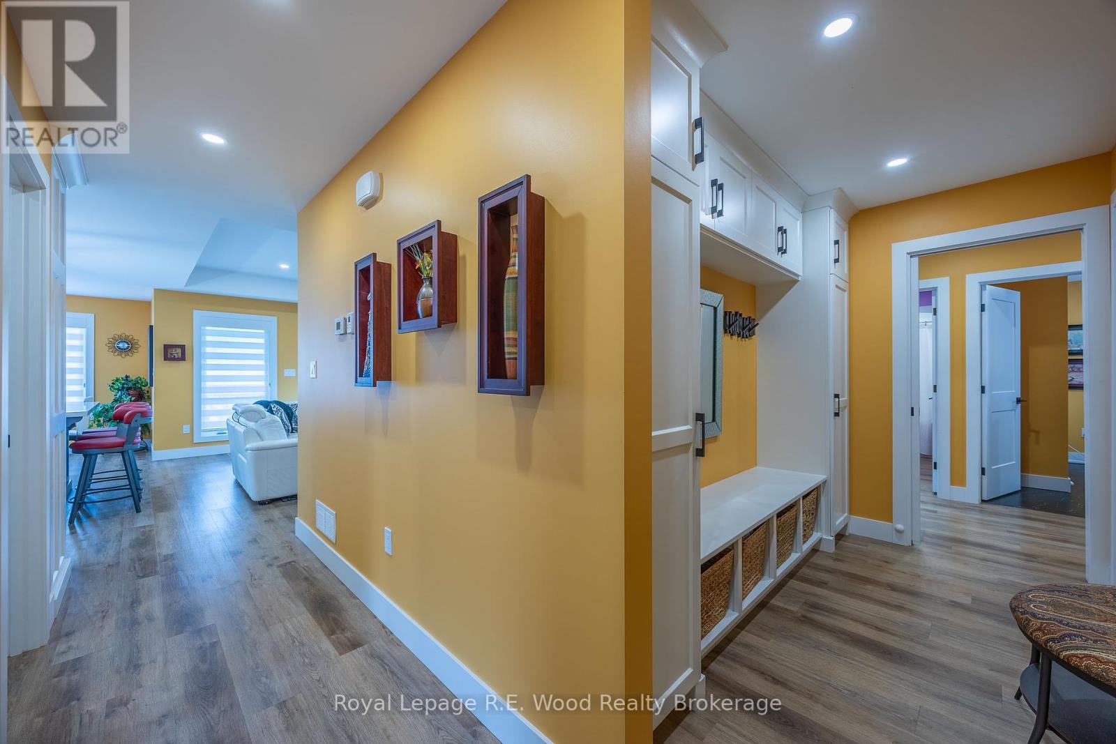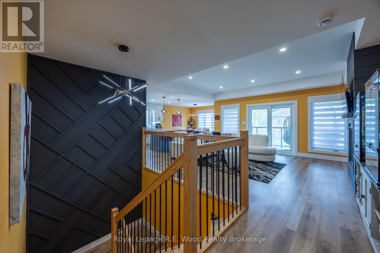 Experience stylish living in this beautifully designed bungalow in Mill Pond Estates with a walkout basement and stunning pond views. The sleek black and white stucco exterior sets the tone for the modern finishes throughout. Step into a spacious mudroom with main floor laundry, leading to an open-concept living area with a cozy gas fireplace and patio doors to the upper deck. The bright kitchen features stone countertops and backsplash, a large island, and a walk-in pantry. The main floor offers a primary suite with a walk-in closet and luxurious 4-piece bath, plus a second bedroom or office and an additional 3-piece bath. Downstairs, enjoy a large family room, two more bedrooms, another full bath, and walkout access to the backyard oasis overlooking the fountain pond. This home blends luxury, functionality, and a peaceful setting, everything you've been waiting for. (id:4069)