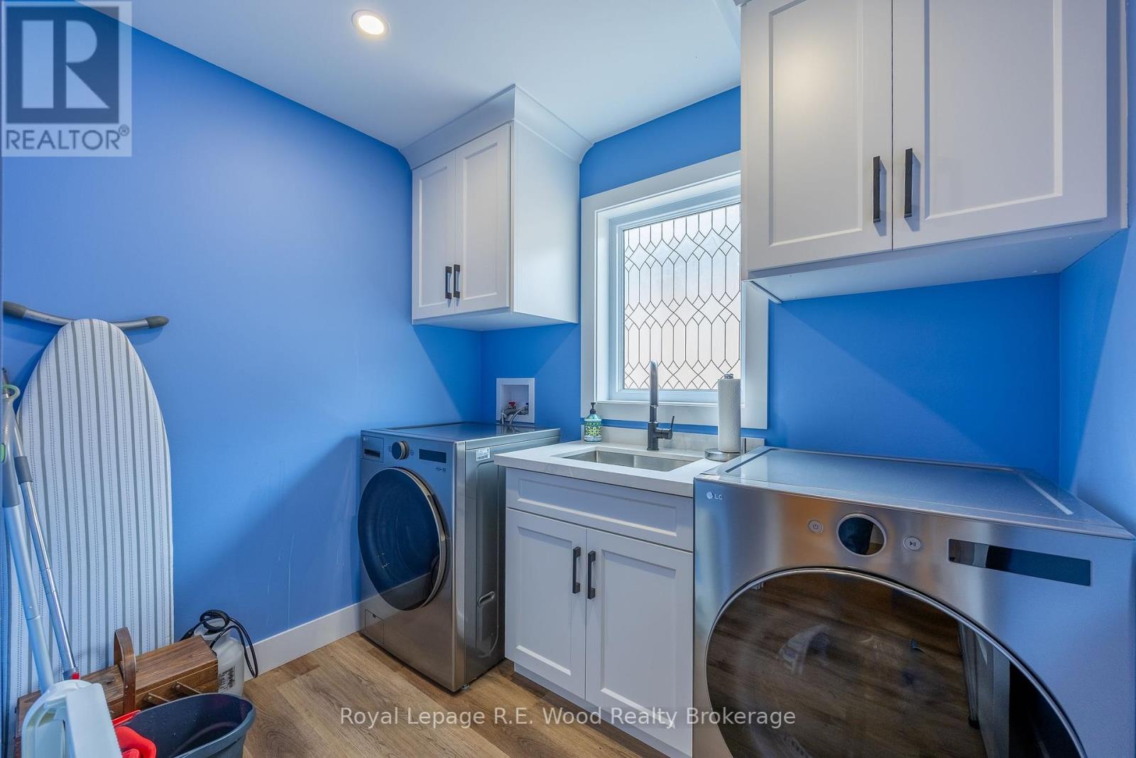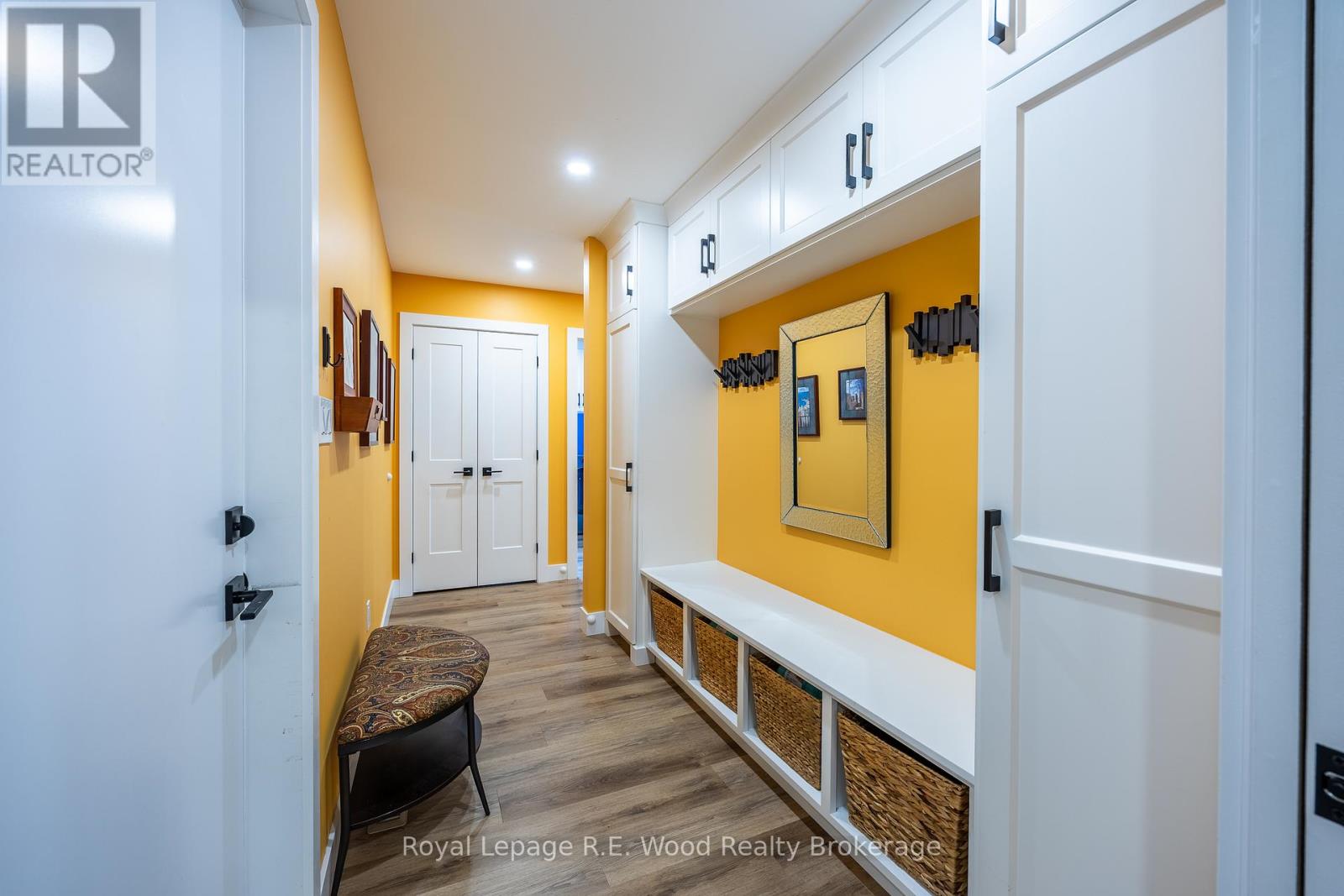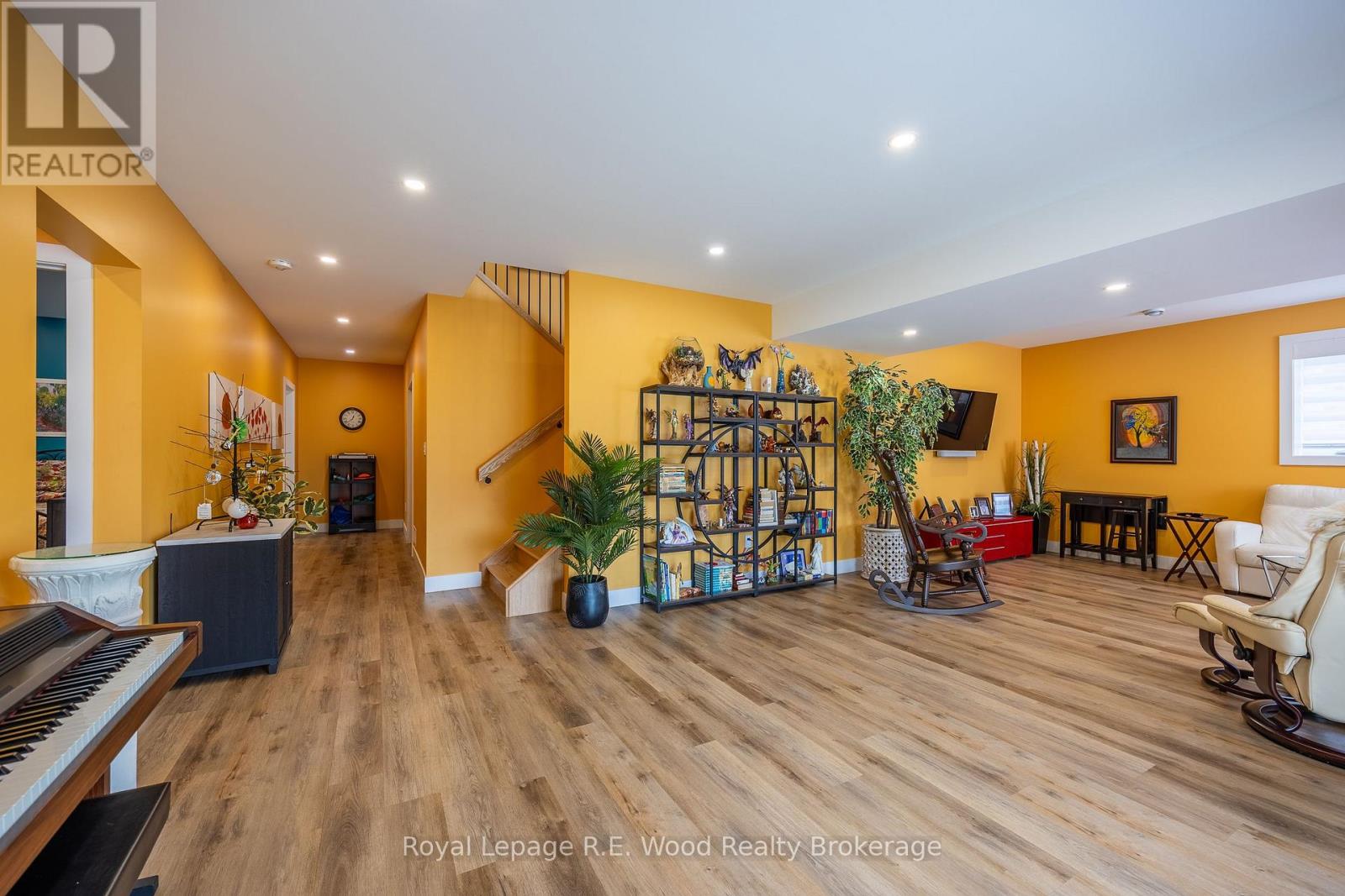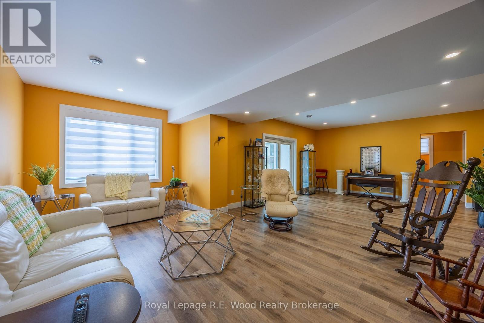 Experience stylish living in this beautifully designed bungalow in Mill Pond Estates with a walkout basement and stunning pond views. The sleek black and white stucco exterior sets the tone for the modern finishes throughout. Step into a spacious mudroom with main floor laundry, leading to an open-concept living area with a cozy gas fireplace and patio doors to the upper deck. The bright kitchen features stone countertops and backsplash, a large island, and a walk-in pantry. The main floor offers a primary suite with a walk-in closet and luxurious 4-piece bath, plus a second bedroom or office and an additional 3-piece bath. Downstairs, enjoy a large family room, two more bedrooms, another full bath, and walkout access to the backyard oasis overlooking the fountain pond. This home blends luxury, functionality, and a peaceful setting, everything you've been waiting for. (id:4069)