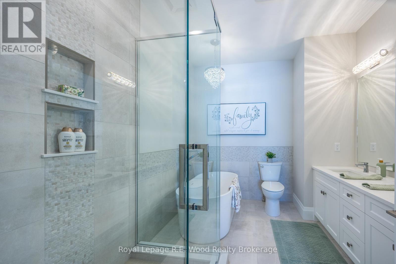 Welcome to The Bridges Estates at the Bridges Golf Course, Tillsonburgs premier new development by TDI New Homes, where modern craftsmanship meets timeless elegance in this stunning new construction Freehold townhome. Step into a grand two-story foyer that leads to a versatile den/bedroom/office, perfect for todays flexible lifestyle. The open-concept kitchen, dining, and living area is designed for effortless entertaining, featuring vaulted ceilings, a striking stacked stone fireplace with warm wood accents, and solid surface countertops throughout. The main-floor primary suite is a true retreat, offering a walk-in closet, freestanding tub, and tiled glass-door shower. A mudroom/laundry with separate garage access adds everyday convenience, while the bright, spacious basement awaits your personal touch. The modern craftsman exterior showcases neutral stone and rich wood finishes, and the large covered deck with post-and-beam construction provides the perfect outdoor escape. Complete with a two-car garage, this home offers luxury and practicality in one unbeatable package. (id:4069)