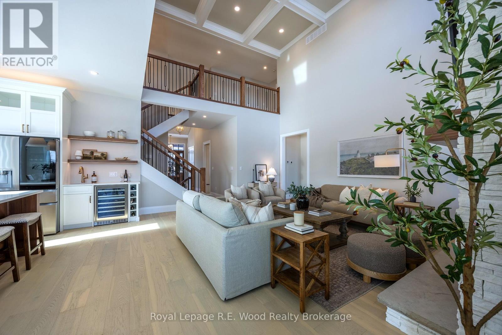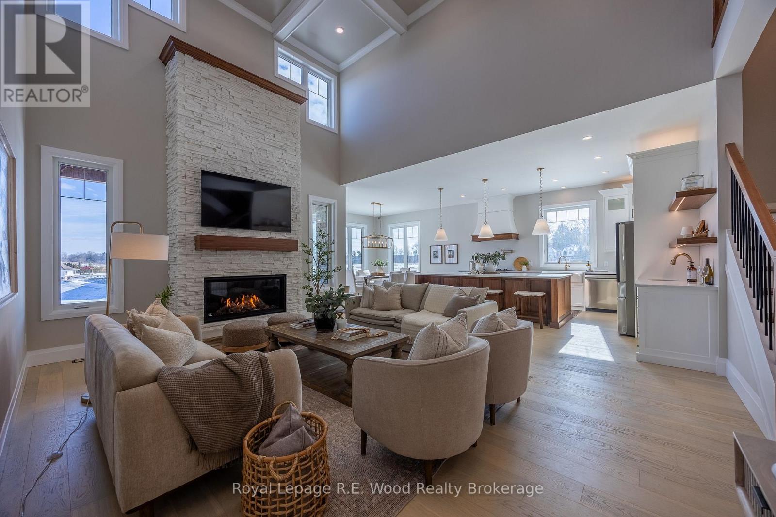 ***Limited Time Offer - Until December 1st Builder will finish the basement at no extra cost for a bonus $200,000 value!*** Welcome to TDI New Homes Bridgestone Model an exceptional executive craftsman-style bungaloft at the Bridges Golf Course where luxury meets comfort. Set on beautifully landscaped grounds, the home features a warm stone and Hardie board exterior with post and beam accents, armour stone hardscaping, concrete pathways, and a covered back patio with an outdoor fireplace perfect for year-round enjoyment. Inside, high-end neutral finishes, light-filled spaces, and 10' ceilings on the main floor create an inviting and sophisticated atmosphere. The two-storey foyer opens into a stunning great room with a 19' tray ceiling and a floor-to-ceiling stone fireplace. The open-concept kitchen includes stone countertops, a massive island, a coffee/wine bar, and a discreet walk-in pantry. Patio doors off the dining room lead to the covered outdoor living space. The main floor offers a two bedroom suite area with a full bathroom, ideal for guests or a home office. The private primary suite features patio access, a luxurious en-suite with dual sinks, a freestanding tub, a large walk-in shower, and a show-stopping walk-in closet with center island and laundry access. Upstairs, a spacious loft overlooks the great room and includes a large bedroom with a 3-piece bath. The expansive basement offers heated floors, rough-ins, and garage access ready for your finishing touch. The oversized garage is finished with heated floors among the many other features of this home. (id:4069)